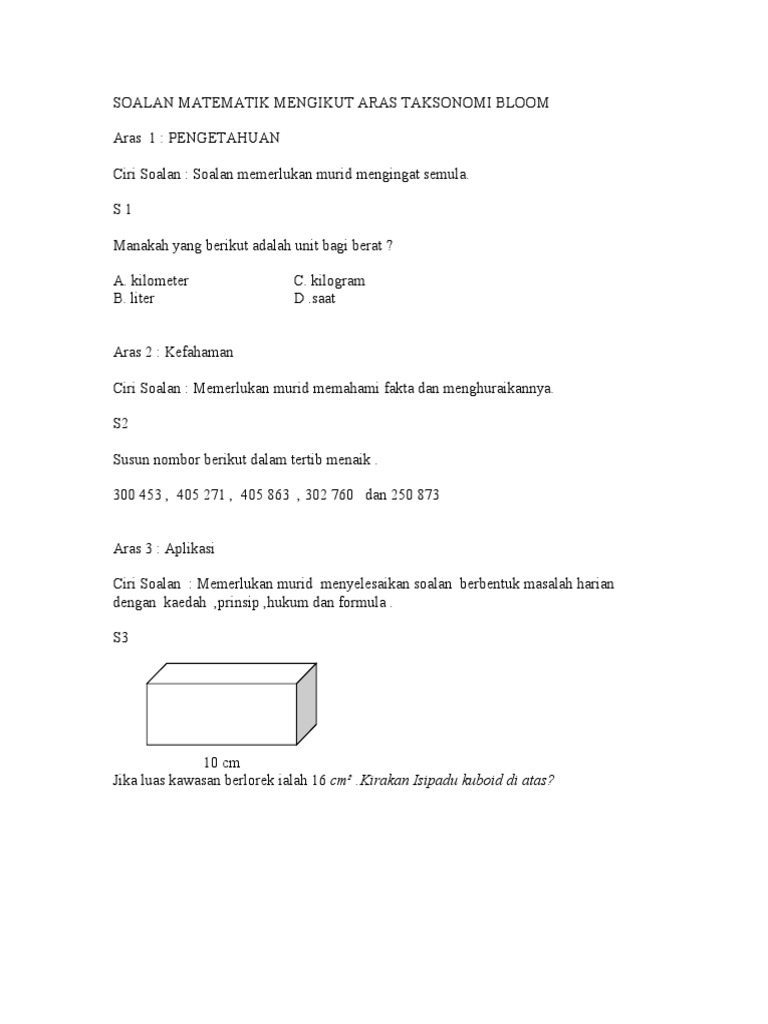 Soalan Matematik Mengikut Aras Taksonomi Bloom Pdf